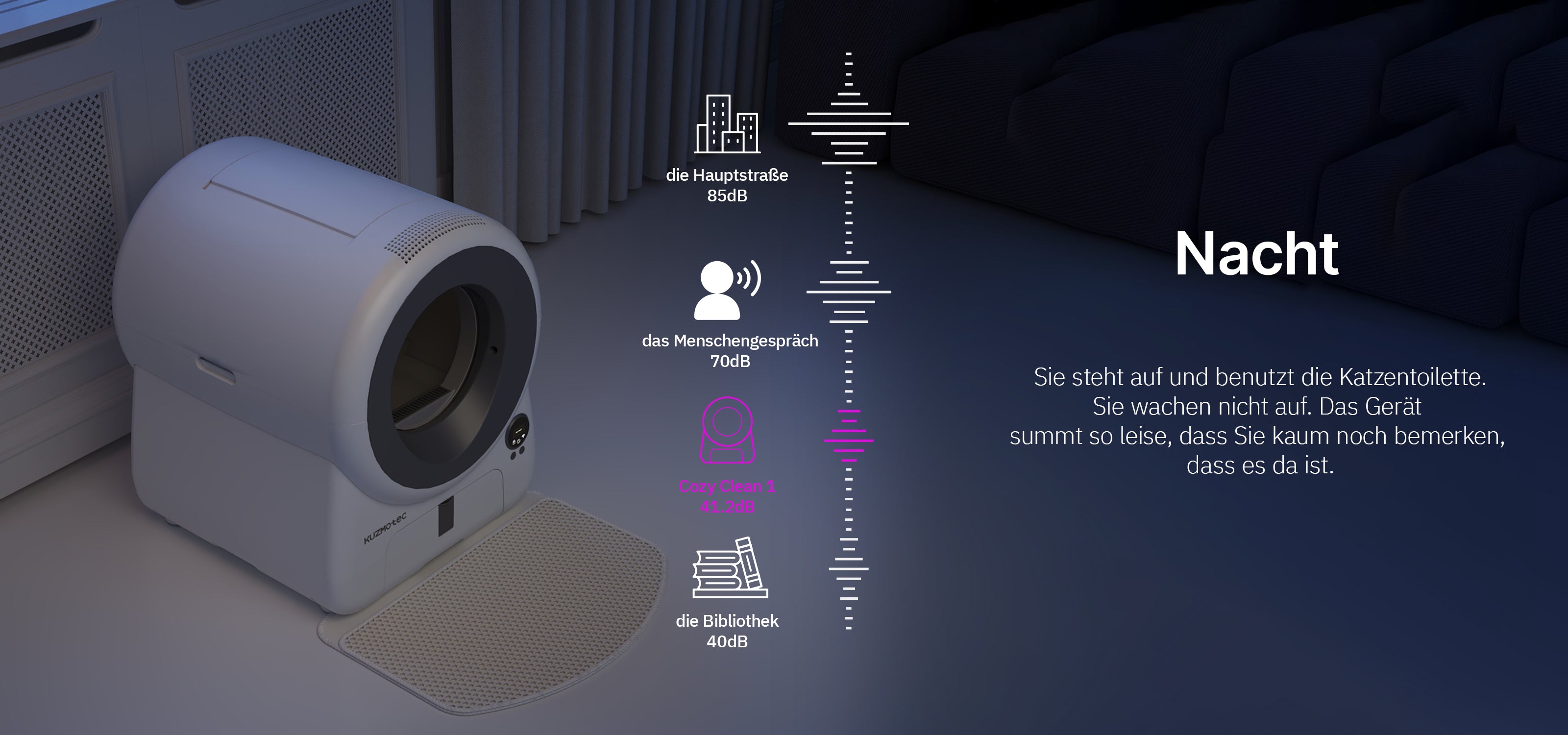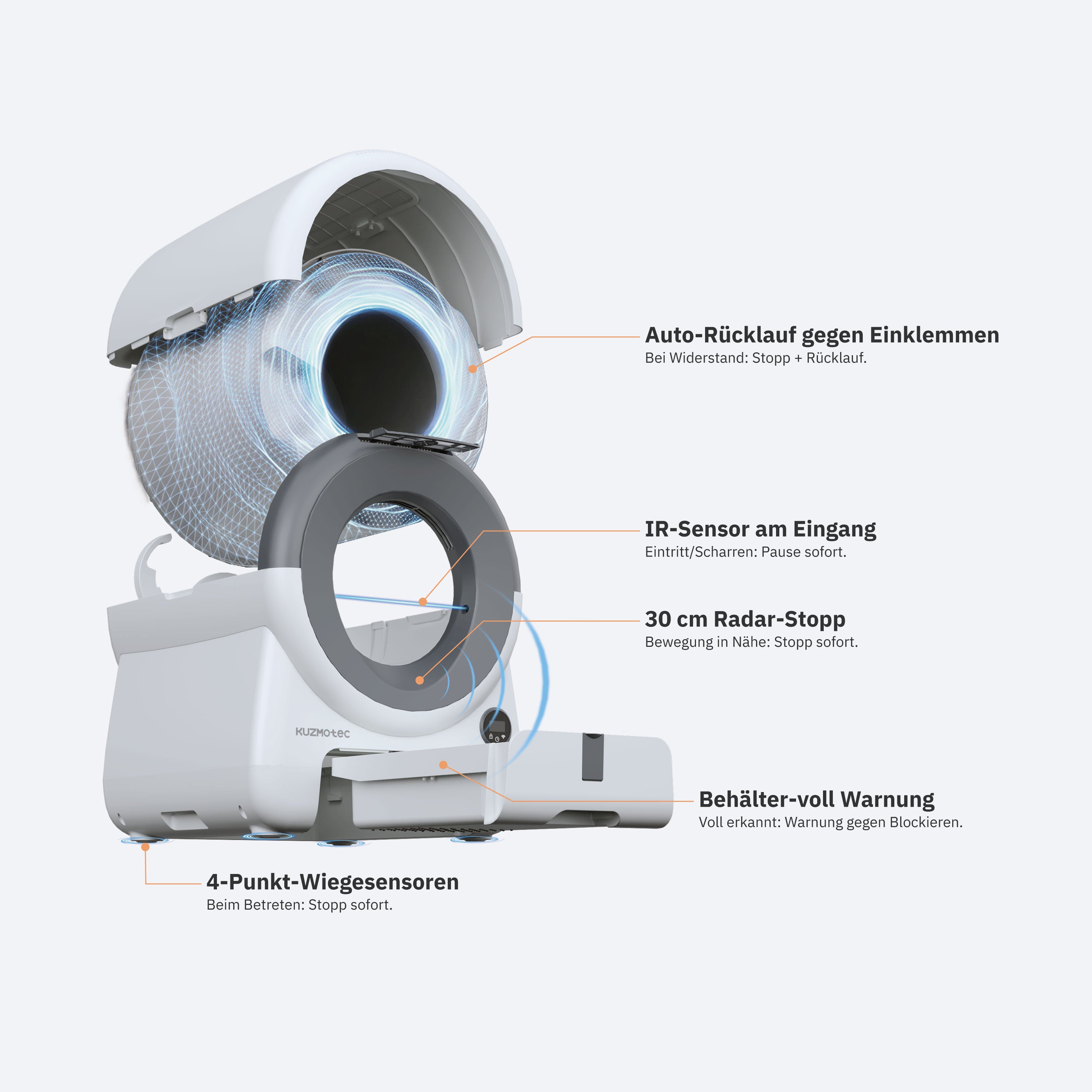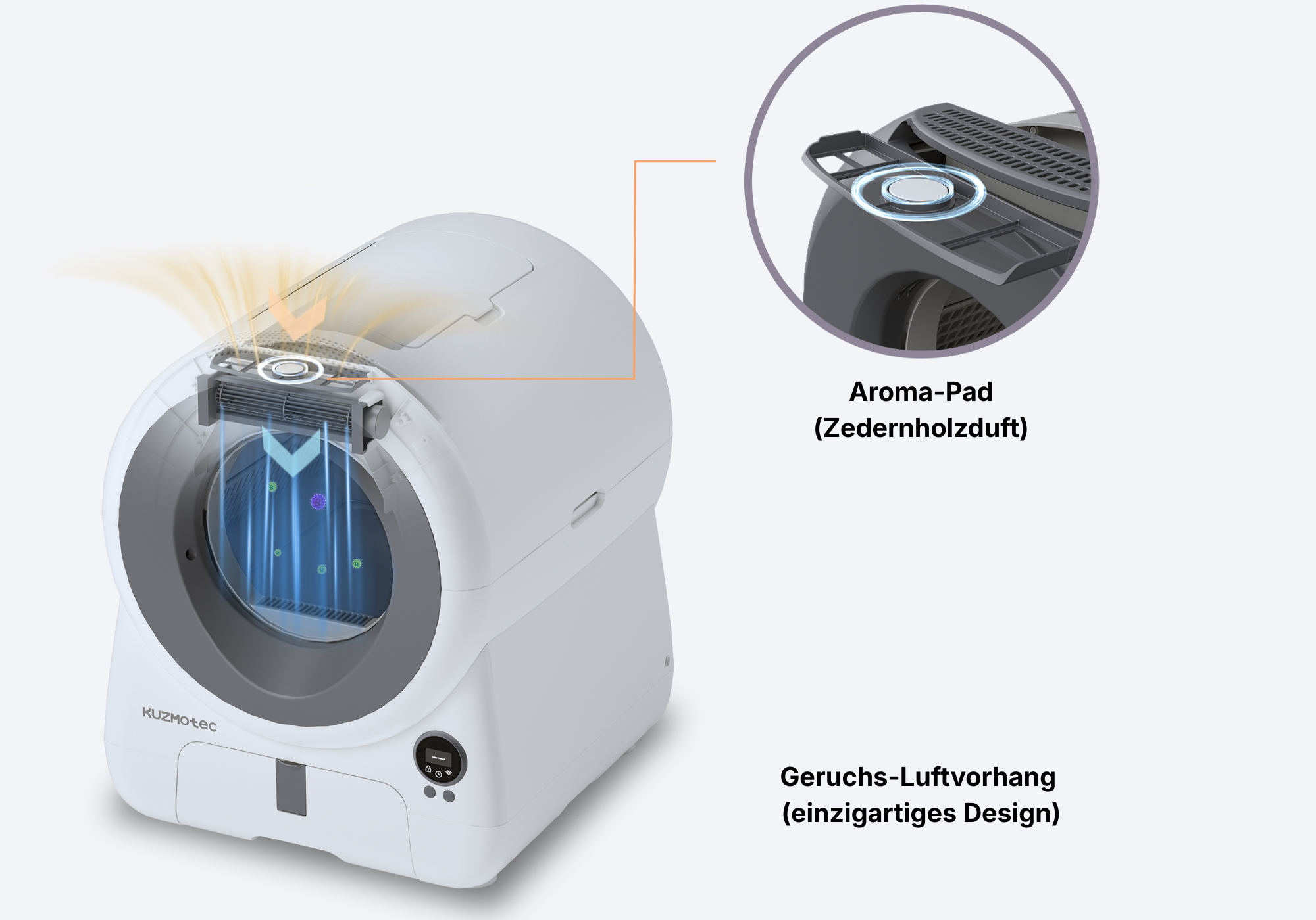 Für den Komfort von Mensch und Katze entwickelt – nicht nur eine Katzentoilette, sondern ein automatisches Reinigungs- und Geruchskontrollsystem.