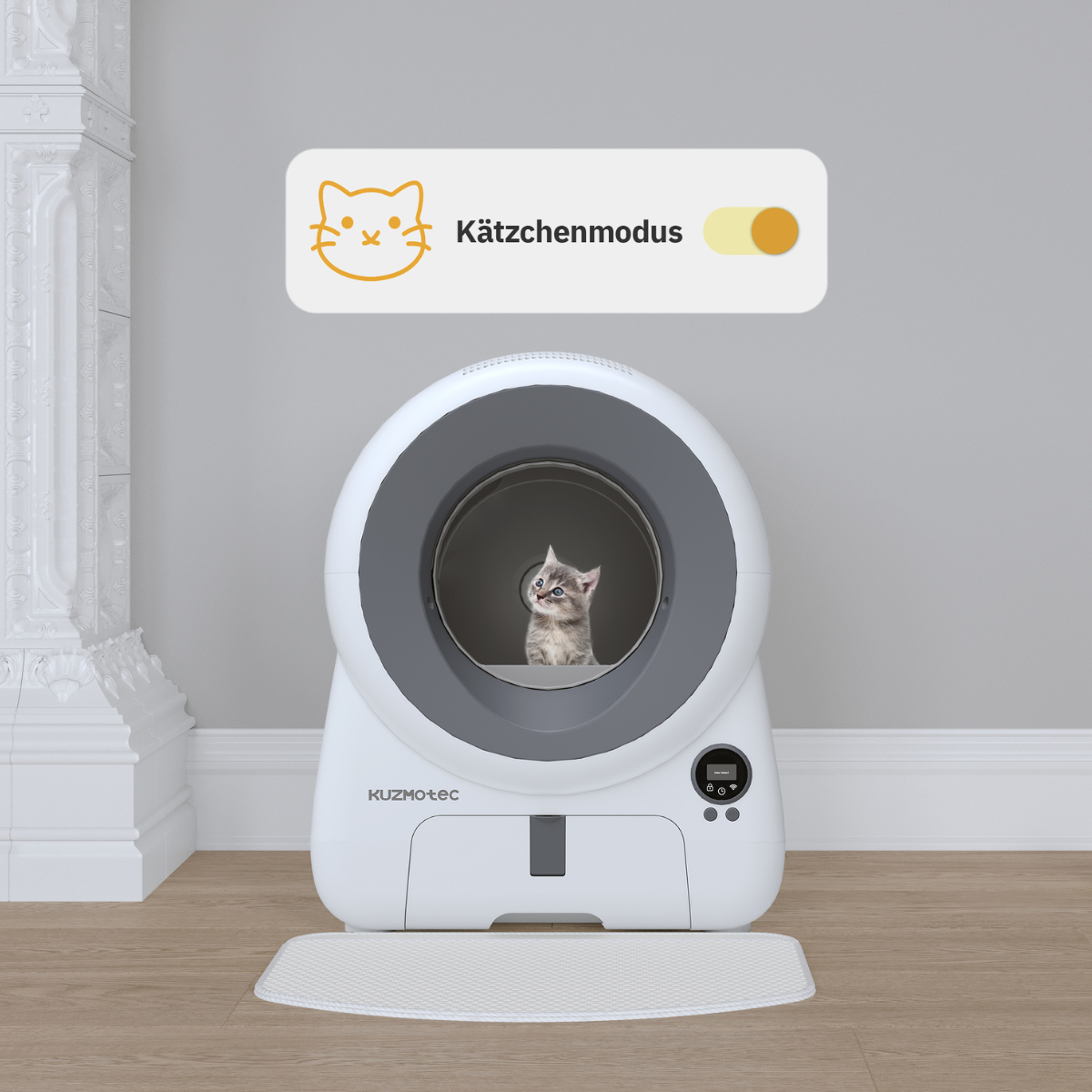 Für Kätzchen bis ≤1,5 kg: Erst nach 3 Nutzungen startet die Reinigung – und nur, wenn du sie in der App bestätigst.