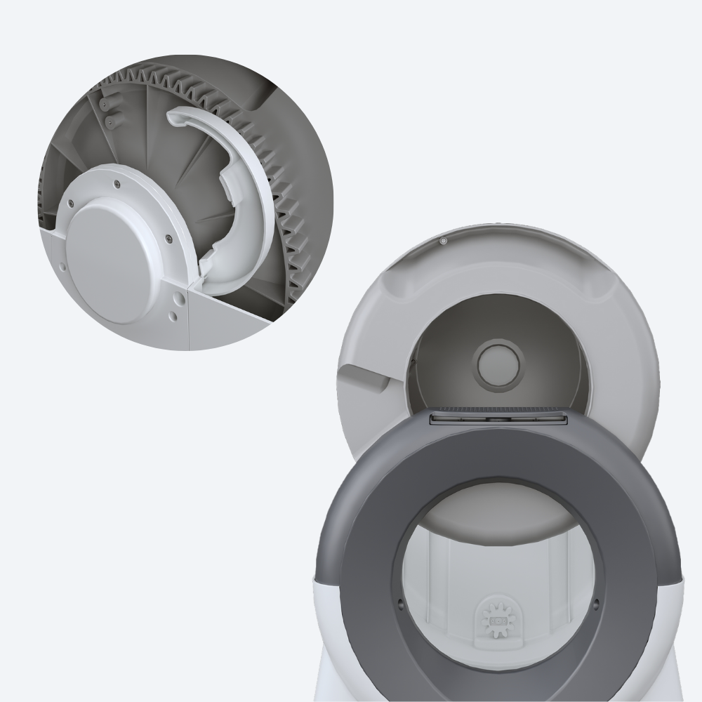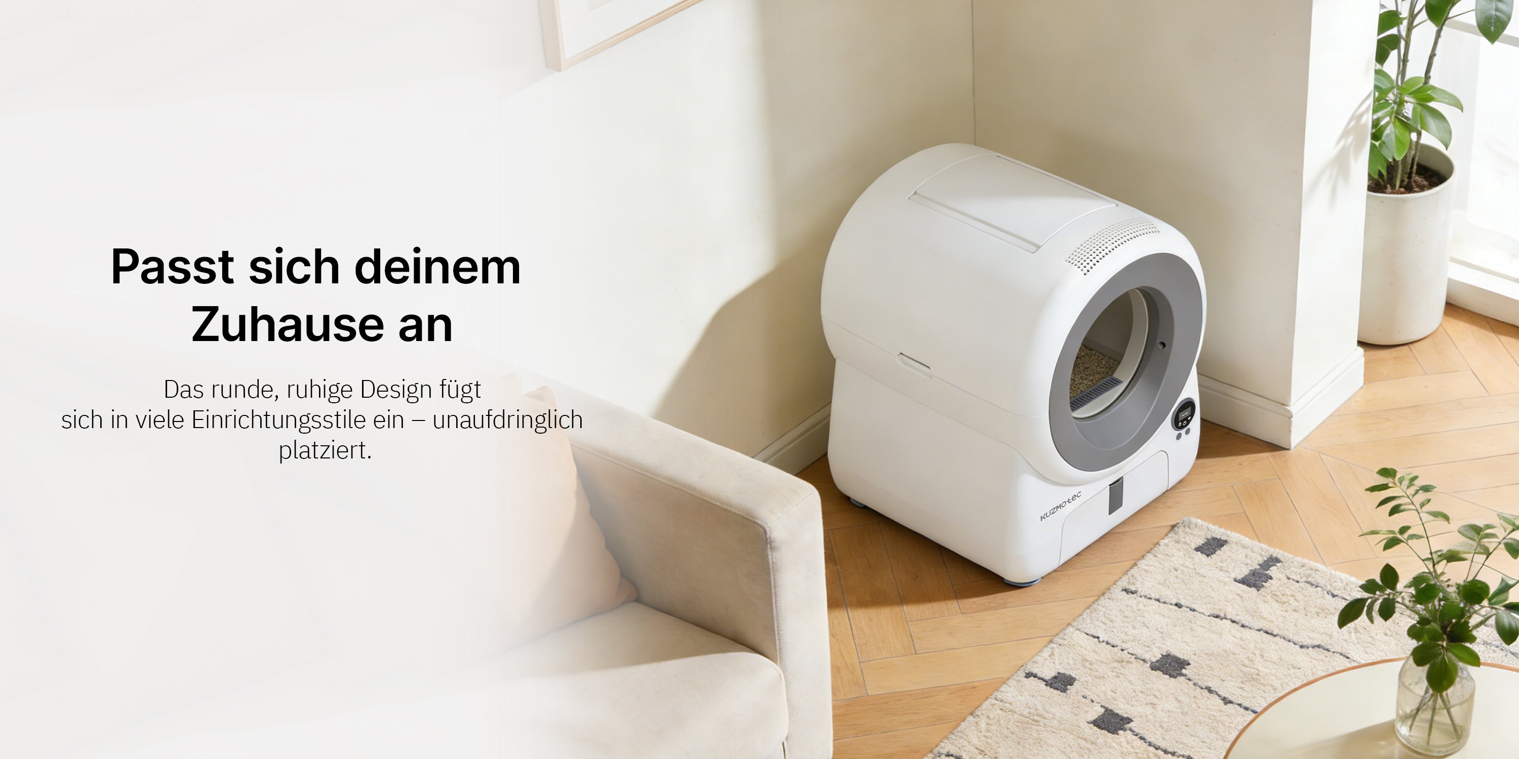 Spart ca. 2,5 Stunden im Monat. Großes Fassungsvermögen für Mehrkatzenhaushalte, extrem wartungsarm auch bei längerer Abwesenheit – und ein Design, das perfekt mit Ihrem Zuhause harmoniert.
