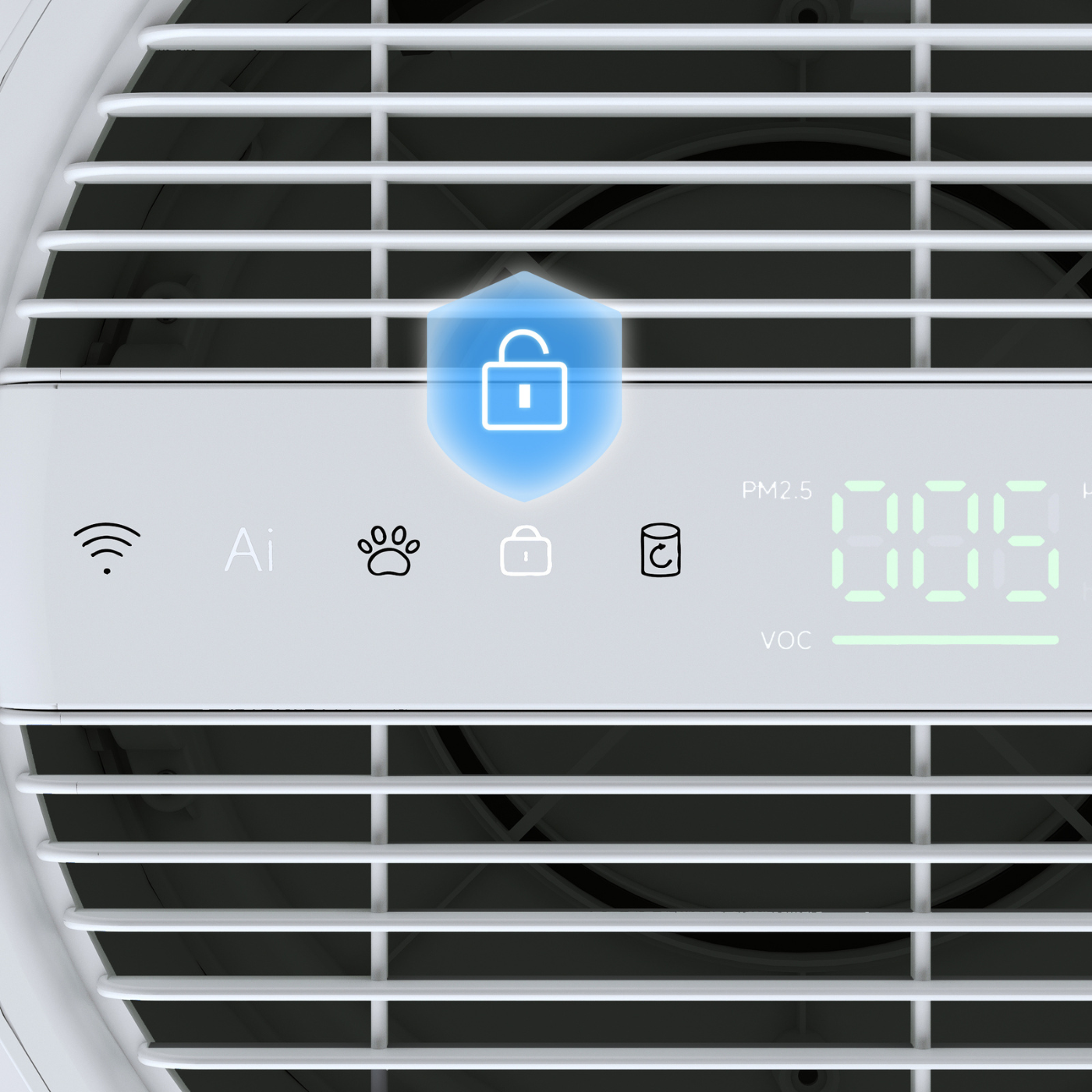 PM2,5- und VOC-Erkennung mit adaptiver Lüftersteuerung.