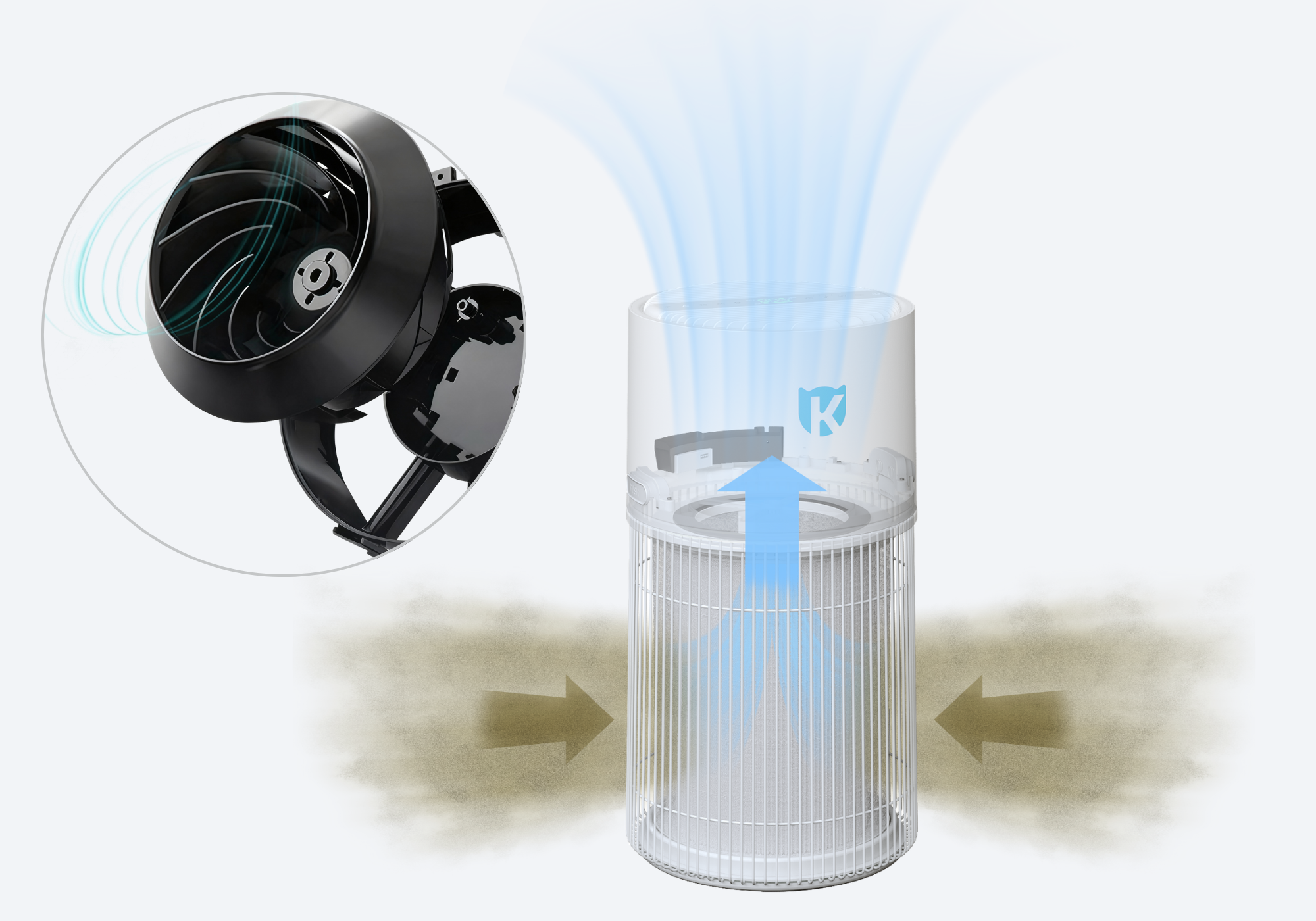 360°-Lufteinlass – Erfasst Luft von allen Seiten – für effiziente Filtration auch in engen Ecken.